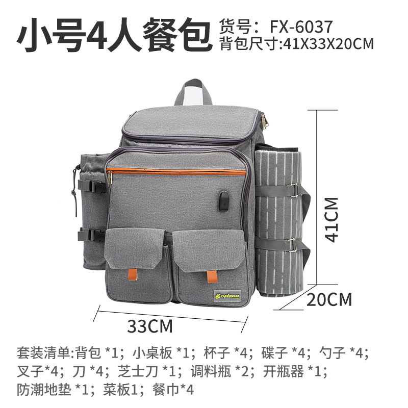 夏诺多吉户外多功能野餐包是户外野餐的完美伴侣。它具备保温保冷功能,能够长时间保持食物和饮料的适宜温度。野餐包内部空间设计合理,可轻松容纳不锈钢碟子 6 个、杯子 6 个、调料瓶 4 个、开瓶器 1 个、芝士刀 1 把、刀叉勺子各 6 把等丰富的餐具,还有折叠小桌板和防潮垫,满足野餐所需。包体采用耐用的材质,结实且美观,侧边和正面有多个口袋方便放置小物品。无论是家庭野餐还是朋友聚会,它都能让你轻松出行,享受户外美食。