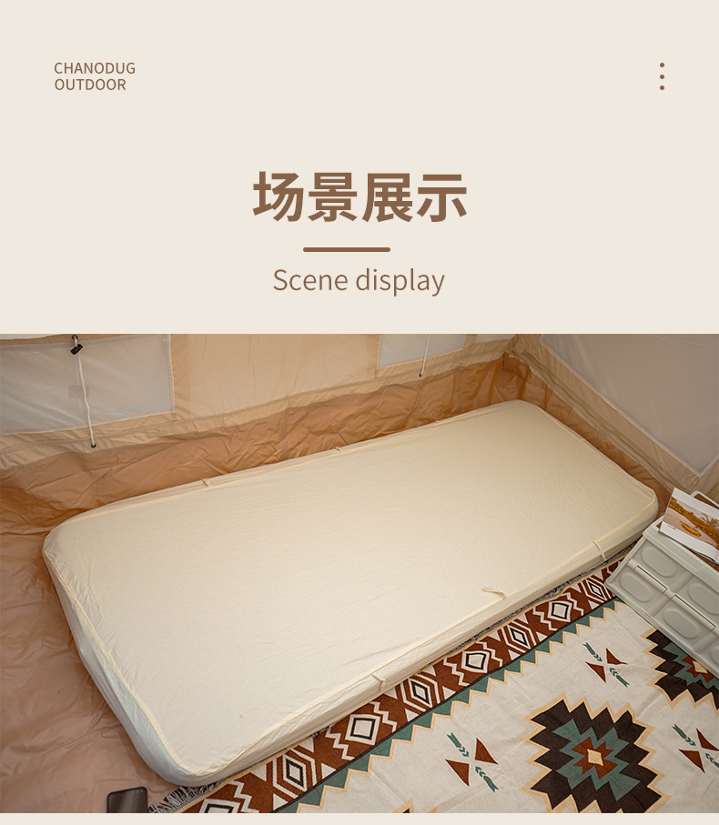 全棉质地的露营气垫床罩,触感柔软,能紧密贴合气垫,且收纳方便,轻松随行。