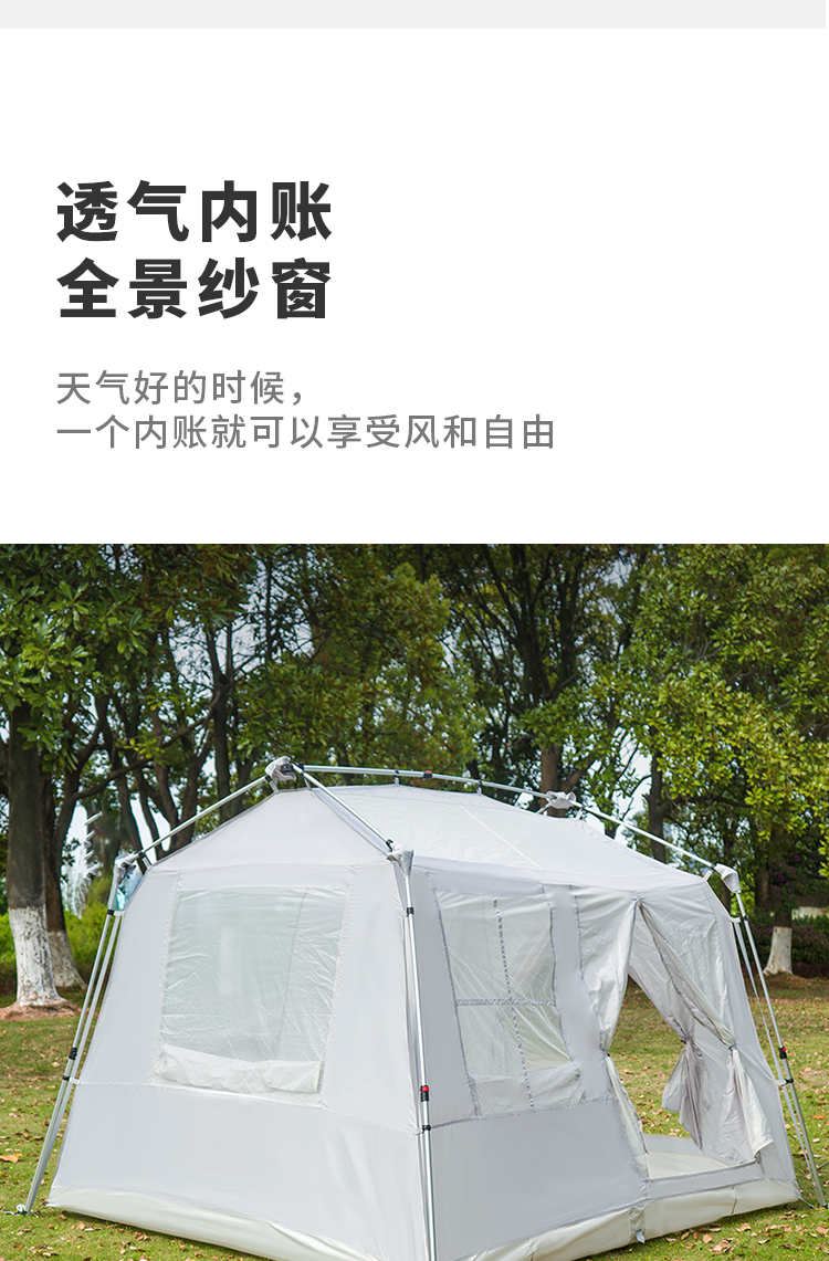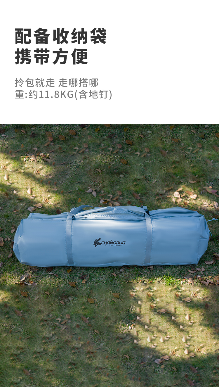 假日山居 5.9 涂银一室一厅天幕帐篷,全新升级。运用先进涂银技术,大幅提升防晒能力,紫外线阻隔率超行业标准。一室一厅布局更合理,休息区静谧舒适,活动区宽敞明亮,满足多种场景需求。选用高品质抗撕裂面料,防水等级极高,面对恶劣天气也能安然无忧。搭配人性化快速搭建系统,无需复杂操作,短短几分钟就能搭建完成,让您迅速融入户外,享受惬意时光,是家庭露营、户外野餐等活动的不二之选。