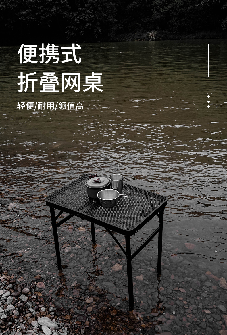 精选铝合金材质,坚固耐用且轻盈便携。独特网面设计,沥水通风佳。可快速折叠,露营、野餐等户外活动轻松搞定。