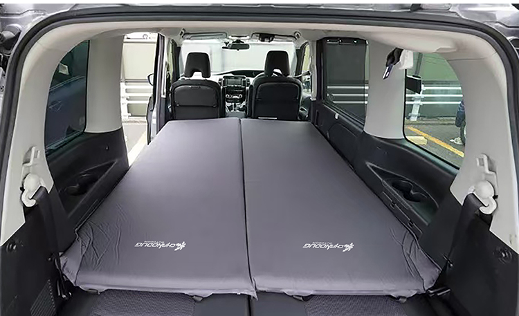 单人款充气垫,表层磨毛春亚纺,触感柔软,内置 PVC19D 高回弹海绵,舒适又耐用。