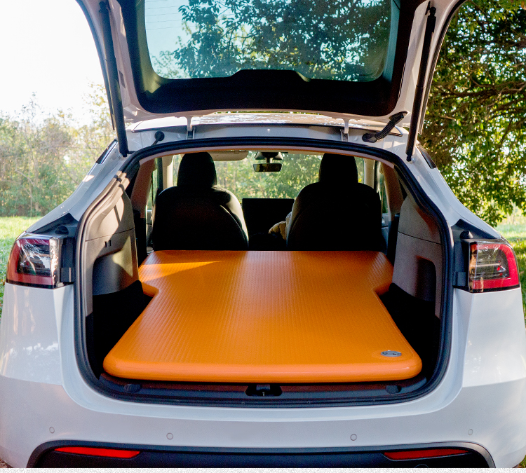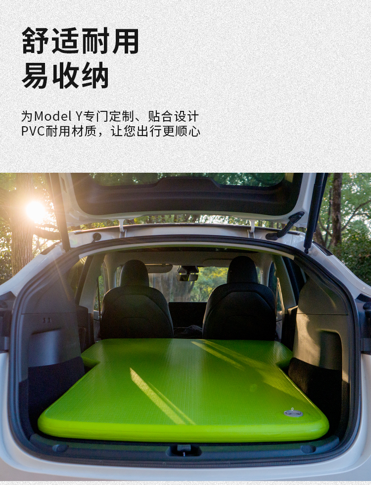 这款专用车载充气床垫,专为 Model Y 车型打造,能精准适配 Model Y 的后备箱空间,当后排座椅放倒后可完美铺开。