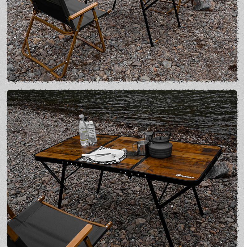 这款户外木纹折叠桌,精选优质木材打造,逼真木纹尽显自然质感,坚固耐用且抗晒耐潮。独特折叠设计,展开轻松,收纳便捷,节省空间,无论是露营野餐、庭院聚会还是户外写生,都能轻松适配,是你的户外休闲好伴侣。